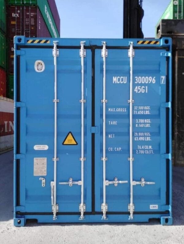 Product Reference: 227240ft long x 8ft wide x 8ft 6 high9ft 6 high cube options alsoavailable hereFor site storage or export useCirca 5 year CSC plate (for export use)High security lock boxes on both doorsBlue and Green optionsGuaranteed wind & watertightOriginal shipping container doors at both ends with 4 locking rods and heavy duty rubber seals